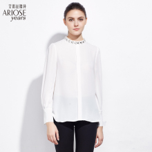艾诺丝雅诗修身纯色套头雪纺衫2017春装新品镶钻圆领女打底雪纺衫