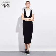 艾诺丝雅诗时尚毛衣背带连衣裙2017春装新品休闲吊带中长包臀裙