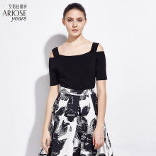艾诺丝雅诗露肩纯色女款毛衫针织衫2017春装新品时尚修身休闲毛衣