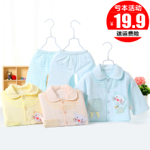 婴儿衣服春秋夏款宝宝纯棉内衣新生儿套装和尚服系带绑带三件套