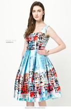 2017春季新品时尚印花收腰连衣裙韩版修身A4FA51116剪标