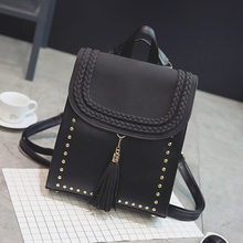 双肩包女韩版pu背包时尚学院风女士包包百搭流苏2017新款潮书包女