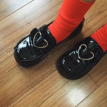 四季新款软妹爱心小皮鞋心形低帮方头制服鞋暗黑原宿真皮女鞋