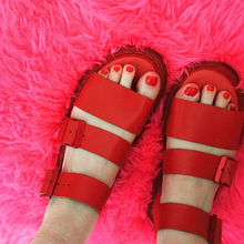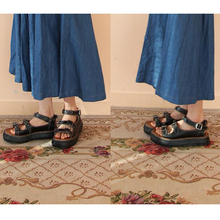 新款金泫雅同款马丁真皮厚平底凉鞋女原宿两扣罗马韩国ulzzang鞋
