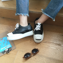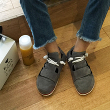 丑萌鞋软妹低帮拼色牛皮鞋女魔术贴原宿潮牌韩国韩国ulzzang鞋女