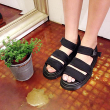 2017夏季新款马丁厚底弹力布凉鞋韩版罗马平底原宿韩国露趾凉鞋女