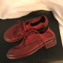 17ss 软质疯马皮复古单鞋 自然擦色酒红单鞋做旧效果街拍女鞋