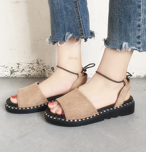 原宿复古罗马搭扣平底软妹凉鞋女夏季百搭休闲英伦风马丁凉鞋潮