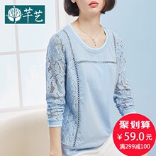 蕾丝娃娃领打底衫长袖t恤春新款时尚韩版宽松上衣女外穿秋衣百搭