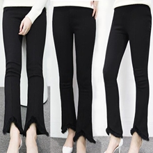 大码裤子女九分裤高腰打底裤胖mm显瘦松紧裤弹力女裤兔毛边喇叭裤