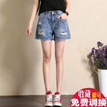 薄款破洞牛仔短裤女宽松A字裤 夏学生休闲阔腿裤大码直筒三分热裤