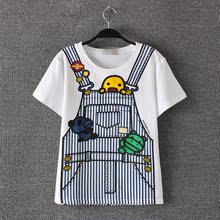 日本单 夏季2016韩版学院风女装新款时尚卡通背带印花纯棉短袖T恤