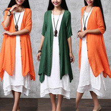 2017夏款棉麻连衣裙显瘦文艺亚麻两件套大码女装无袖背心长裙套装