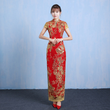旗袍红色新娘结婚敬酒服蕾丝礼服长款开叉宴会演出2017新款旗袍女