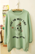 韩国秋冬套头加绒卫衣女卡通猫头鹰宽松抓绒加厚大码中长款卫衣裙