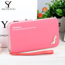 可放手机大容量饭盒女士钱包 日韩可爱搭扣长款多功能镶钻手包