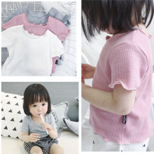 ins爆款17春夏款新生儿女宝宝婴幼儿童全棉坑条木耳边短袖上衣T恤