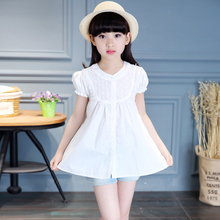 童装女大童衬衣2017春装新款纯棉女孩翻领长袖衬衫女童白色衬衣春