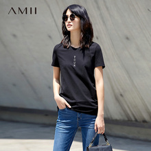 Amii[极简主义]2017春装新款艾米女装旗舰店大码短袖T恤女上衣潮