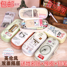 包邮 韩国款 创意复古巴黎铁塔笔袋 超大容量铅笔盒化妆包 蓝草