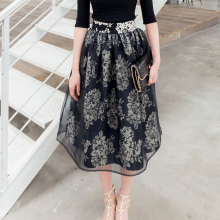 2016秋装新款 限量高端定制 欧根纱蓬蓬裙半身裙长裙复古印花伞裙