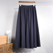 棉麻款半身裙女装2016春新款亚麻A字百褶裙大摆半身长裙大码裙子