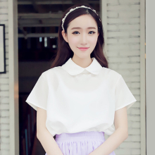 AA同款复古小翻领娃娃领雪纺衫女大码宽松短袖打底衫2016夏装新款