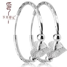 岁月印记 银饰 925纯银耳环 车花 女款 耳饰 爱心 耳圈 银耳环