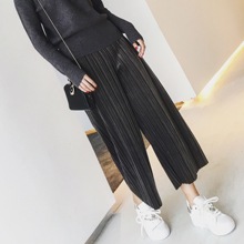 大C来也 2017春装新款松紧腰显瘦百褶压皱裤9分丝绒阔腿裤女裤子