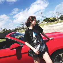 大C来也短袖上衣鲨鱼印花t恤女夏装2017新款韩版宽松百搭体恤衫潮