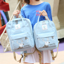 时尚新款小鹿帆布印花书包韩版潮个性背包男女中学生学院风双肩包