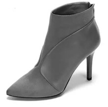 Daphne/达芙妮圆漾 冬季正品牛皮欧美尖头细高跟女踝靴1015605836