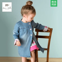 davebella戴维贝拉女童宝宝春季纯棉牛仔荷叶边连衣裙0-6岁DB530