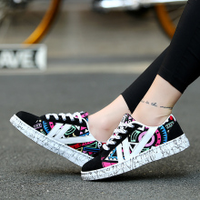 春季韩版涂鸦女鞋子潮平底学生鞋百搭帆布鞋运动休闲鞋板鞋女布鞋