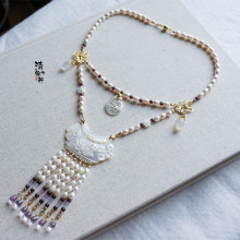 【笙声慢】清雅轩手工璎珞项链古典中国风珍珠白蝶贝毛衣链
