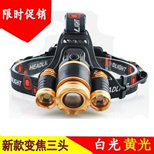 强光T6三头头灯夜钓鱼超亮矿灯户外探照灯疝气充电100W防水头戴式