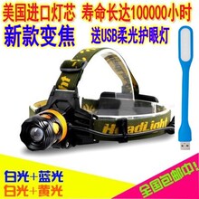 LED防水超亮强光头灯充电可调焦T6夜钓鱼灯远射头戴疝气探照矿灯