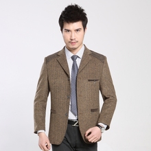 春秋新款男装中年男羊毛呢西服 中老年大码修身款呢子单西装外套