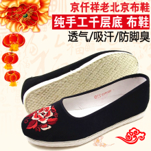 京仟祥老北京布鞋女鞋单鞋休闲鞋 复古纯手工纳底千层底布鞋牡丹