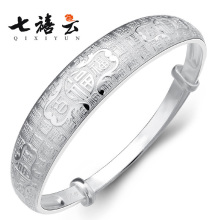 七禧云银饰 银手镯999 足银百福推拉银手镯女款 银镯子老人首饰