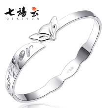七禧云 狐狸银手镯999纯银女 银镯子韩版时尚开口银饰品送女友