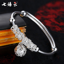 七禧云转运珠银手镯纯银女银镯子开口民族风送女友珠银饰品圆白银