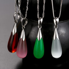 七禧云925银项链水滴吊坠猫眼石 银项链 女韩版饰品天使之泪