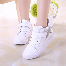 2017春秋季新款女童运动鞋真皮高帮儿童休闲鞋中大童小白鞋跑步鞋