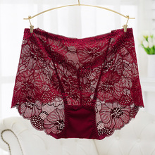 3条装大码性感蕾丝内裤女诱惑透明胖mm200斤夏中腰女士无痕三角裤