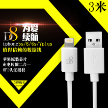 D8 iphone7数据线5s/6/6s plus手机充电器线加长3米苹果认证正品