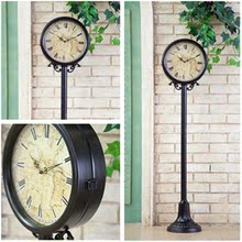 欧式复古创意铁艺落地立钟静音客厅家居装饰品样板房豪华摆件摆设