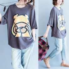 外贸2016秋季新品韩版萌萌大熊纯棉卫衣中袖休闲宽松舒适大码T恤