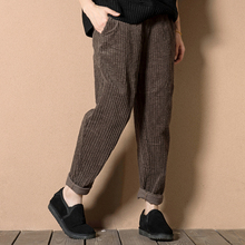 外贸2016大码女裤胖mm文艺宽松大码显瘦灯芯绒条绒哈伦裤休闲长裤