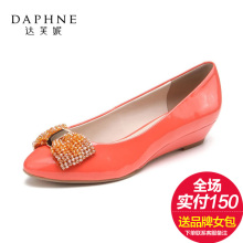 Daphne/达芙妮专柜 新款浅口漆皮蝴蝶结低坡跟尖头女工作单鞋